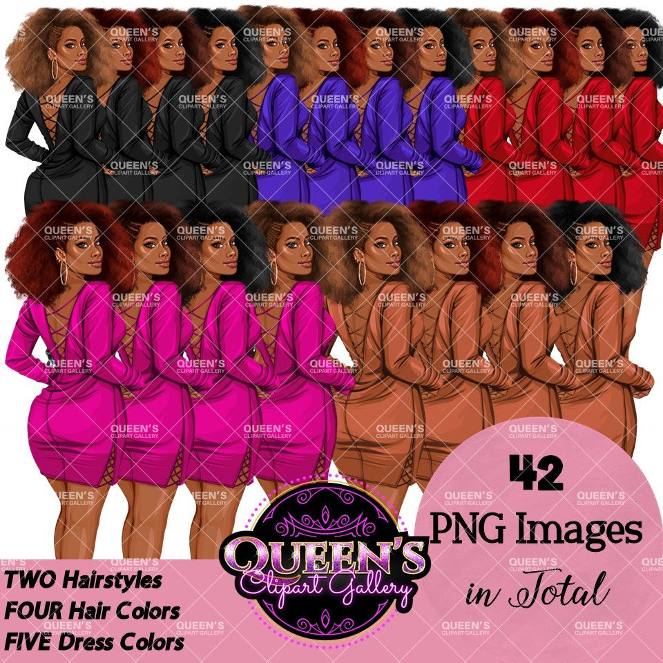 Woman in Dress, Afro Woman Clipart, Fashion Girl Clipart, Fashion Illustration Clipart, Black Girl Magic, Girl Boss, Planner Girl Clipart