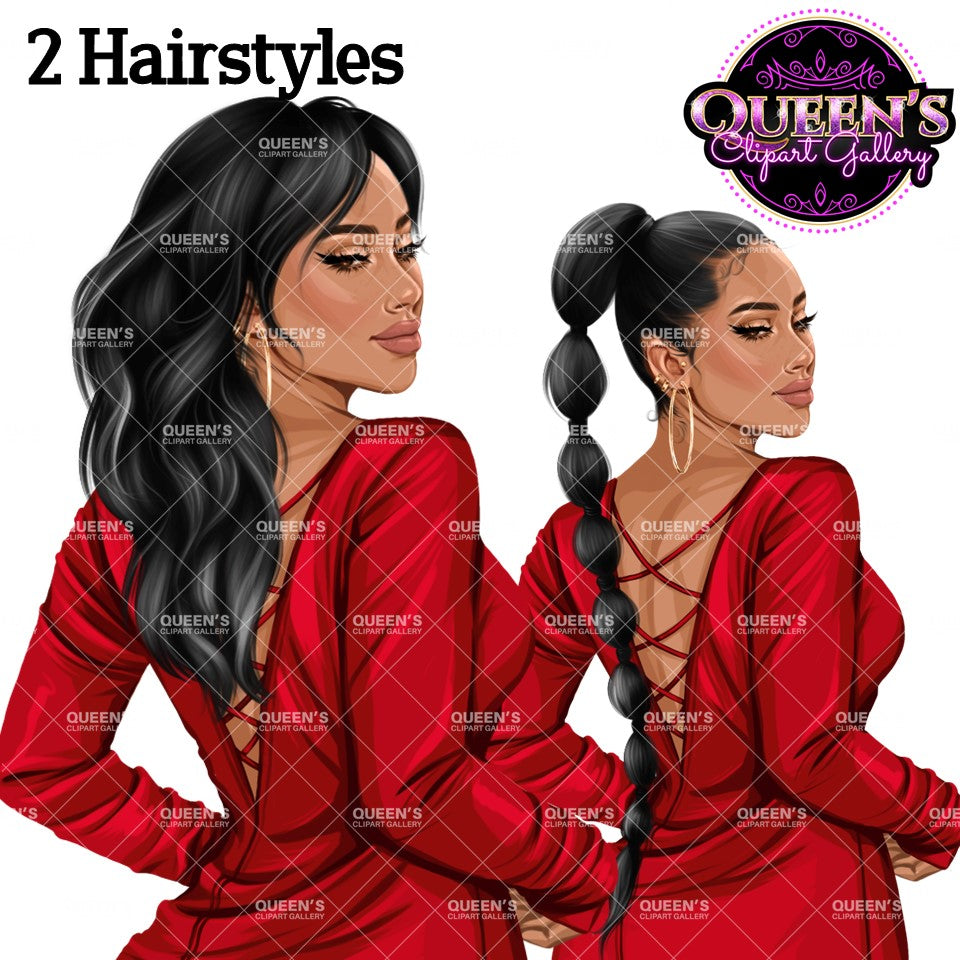 Back view, Red dress, Elegant woman, Fashion girl clipart, Fashion illustration clipart, Black girl magic, Woman in dress, Curvy woman png