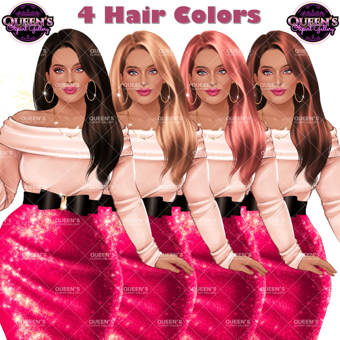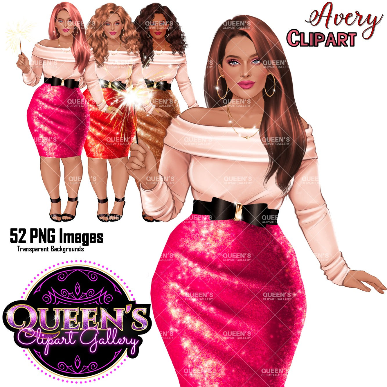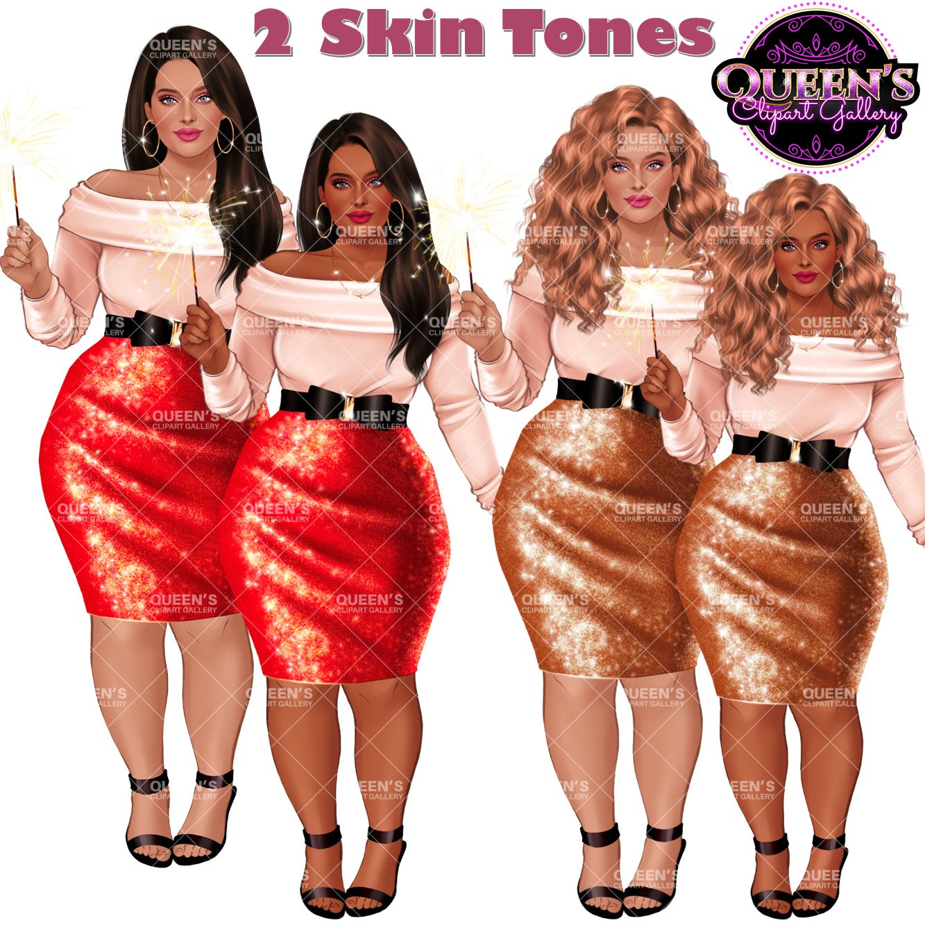 New Year Clipart | New Year's Planner | Fashion Illustration | Fashion Woman Clipart Set | Plus Size | Diverse Women PNG | Celebration | PNG