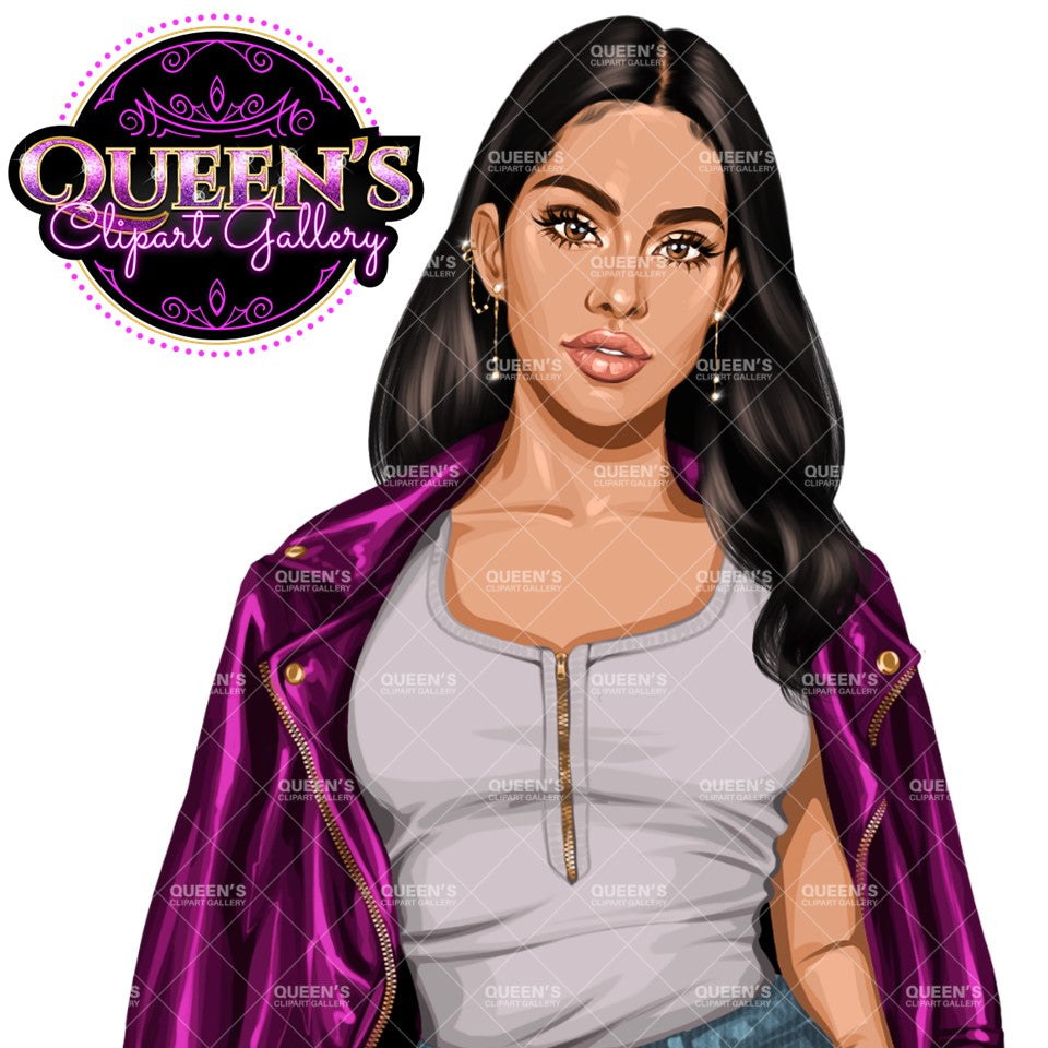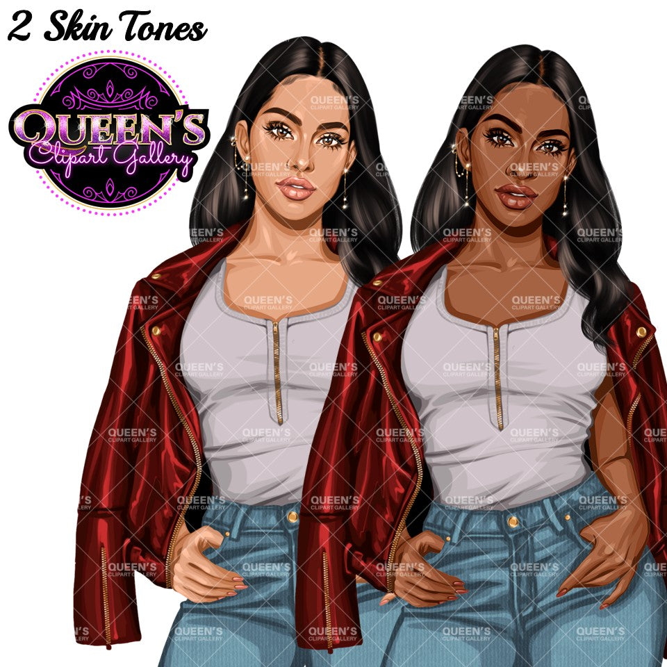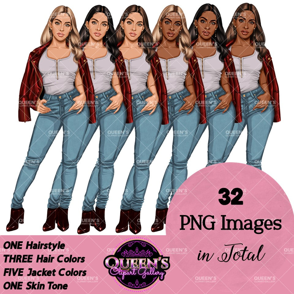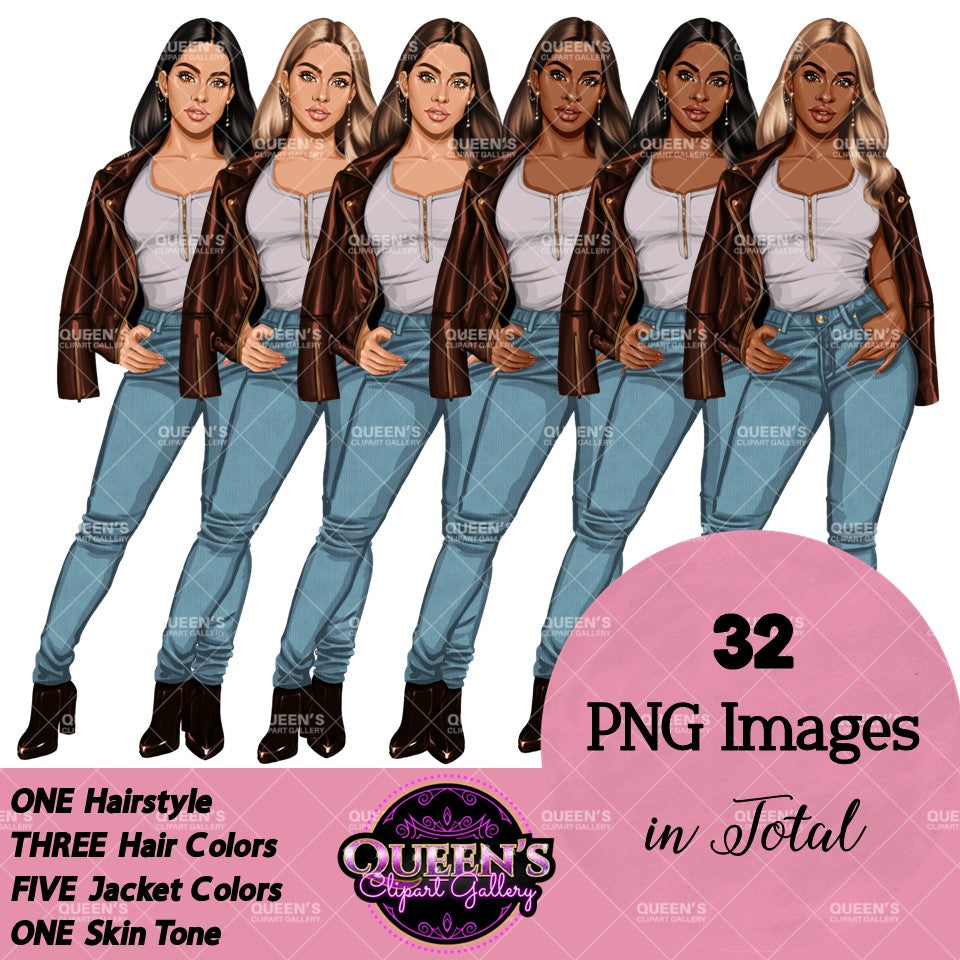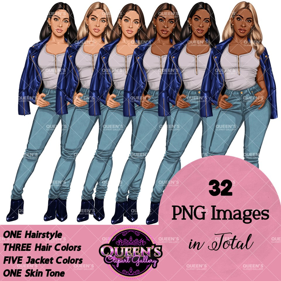 Curvy denim girl, Jeans girl clipart, Curvy girl, Fashion girl clipart, Girl boss clipart, Fashion woman, Woman in leather jacket, Curvy woman